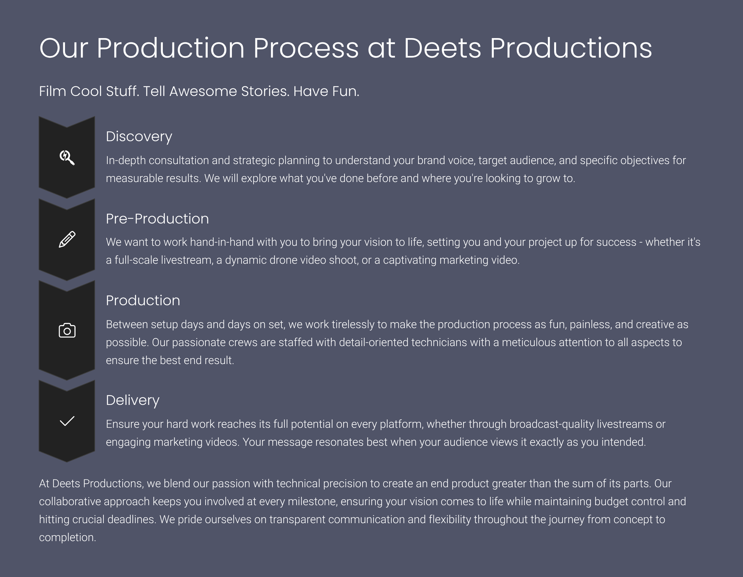From corporate conferences to sports to expert led panels, our team at Deets Productions brings a versatile skillset that allows us to tackle livestreams across nearly every industry. Our portfolio showcases our expertise in captivating visuals, greater information retention, and delivering significant business impact that exceeds client expectations - no matter the event or audience. Better quality livestreams resonate exponentially with the audience, driving higher engagement and more meaningful connections.
